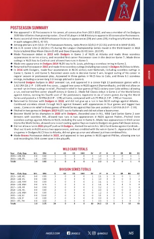◆ Ranks second all-time in MLB Postseason history in appearances (59) and saves (20), trailing only Mariano Rivera