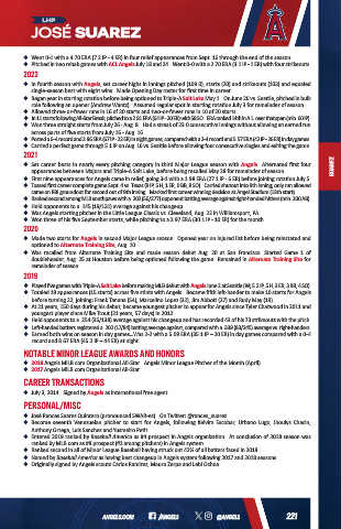 ◆ Set career bests in nearly every pitching category in third Major League season with Angels...Alternated first four SUAREZ