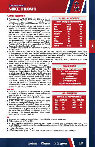 ◆ 350 career home runs are good for sixth in A.L. history thru a TrouT’s A.L. MVP ToP-3 VoTING fINIshes