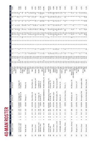 40-MAN ROSTER Ht. T B PITCHERS (22) No. 6-1 L L Aldegheri, Sam 66 6-2 L L Tyler Anderson, 31 6-1 R R Sam Bachman, 40 6-4 L L Burke, Brock 46 6-5 R L Crouse, Hans 52 6-4 R L Dana, Caden 36 6-6 L L Dashwood, Jack 60 6-2