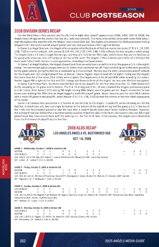 tage throughout the playoffs with the Majors’ best record (100-62). The Angels also entered the 2008 postseason having