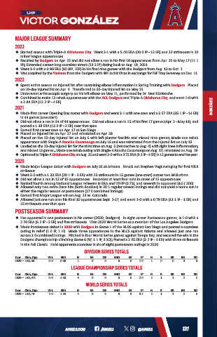 ◆ Has appeared in one postseason in his career (2020, Dodgers)...In eight career Postseason games, is 1-0 with a