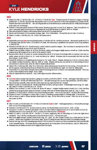 ◆ Led Cubs with a career-high 33 starts, going 14-11 with a 3.44 ERA (199 IP - 76 ER)...Averaged 1.99 walks per 9.0