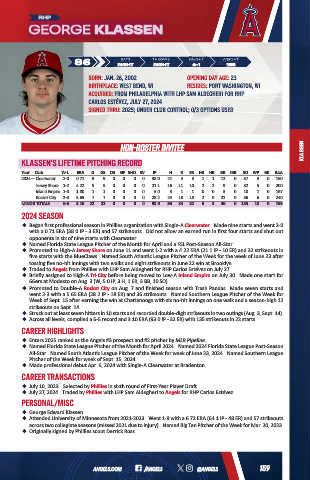 ◆ Enters 2025 ranked as the Angels #3 prospect and #2 pitcher by MLB Pipeline.