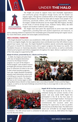 toward local causes. Each year, the Angels Baseball Foundation awards community organizations
